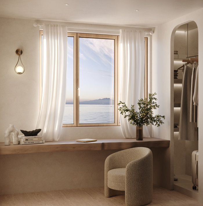 Enveloped by the cerulean sea and the tranquil nature, Byblos Mare villa evokes a feeling of bliss and tranquility in its elegantly appointed interiors.